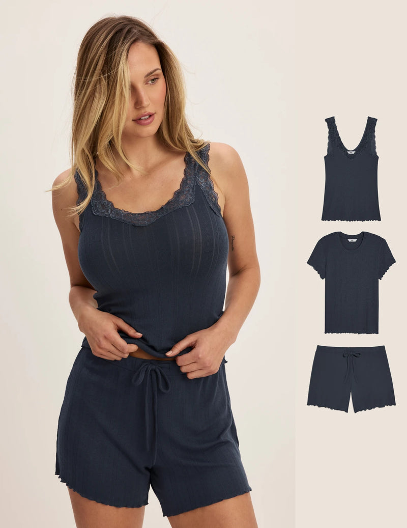 Set includes: 1 pointelle lace tank, t-shirt & sleep short