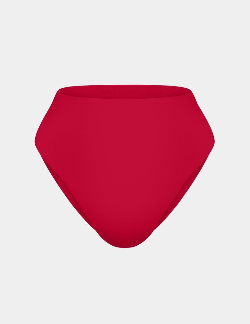 A flattering high rise bikini bottom that has gentle tummy smoothing across the front, with mid-cut leg and cheeky bum coverage.