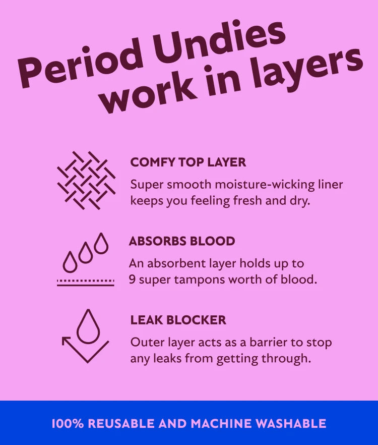 Moisture-wicking, odor-crushing, life-changing leakproof undies. Take ourLeakproof Quiz to find your perfect pair.