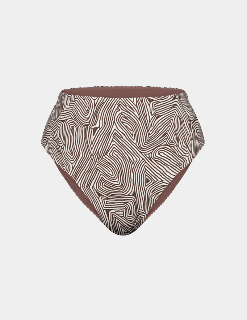 A flattering high rise bikini bottom that has gentle tummy smoothing across the front, with mid-cut leg and cheeky bum coverage.