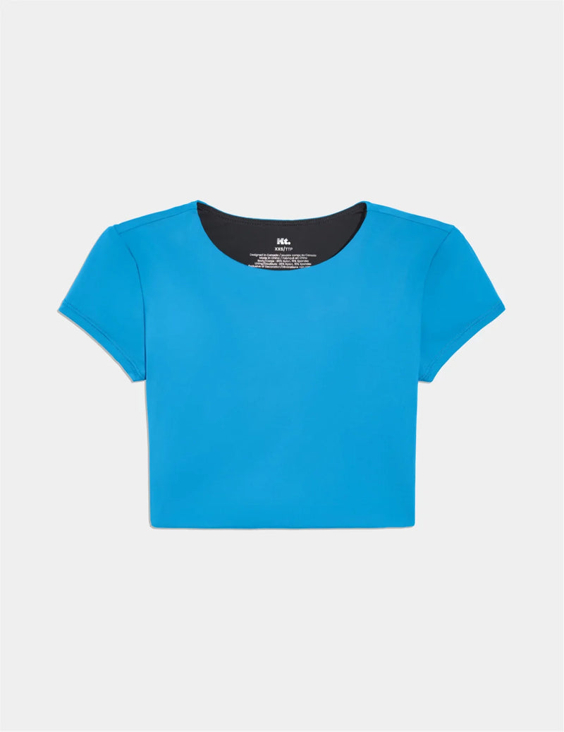 A sporty style that offers sun coverage and features a built-in shelf bra with removable cups.