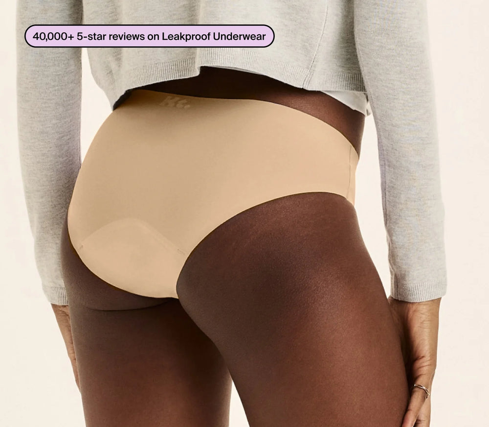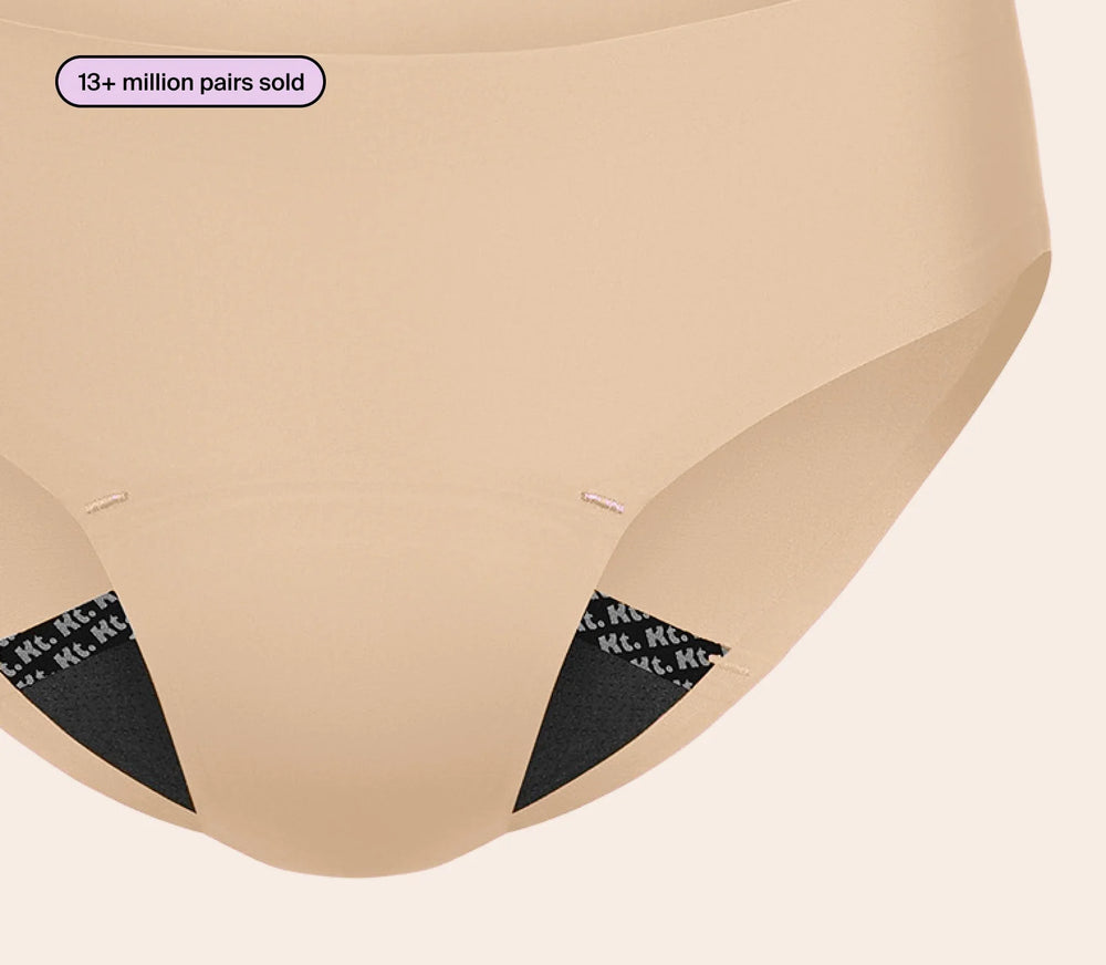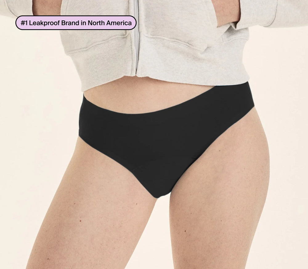 Our patented 360 LeakSeal™ technology locks in leaks at every edge. The ultra-thin liner absorbs about 2.5 super tampons worth of liquid.