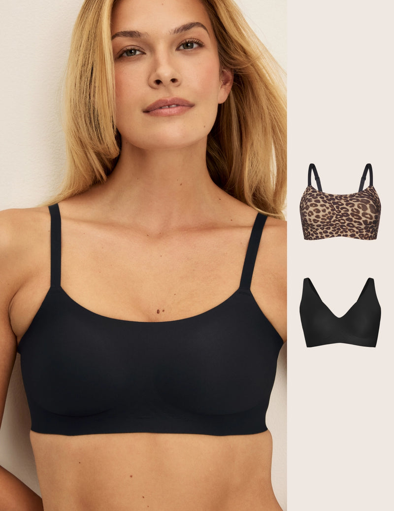 Set includes: Wireless bra kit with 1 scoop bra and 1 v-neck bra